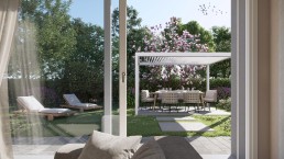 A ciascun appartamento sarà inoltre abbinata una autorimessa di pertinenza esclusiva a piano terra, nonché, un posto auto scoperto di proprietà inserito all’interno di una corte esclusiva interamente recintata.