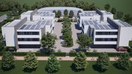 Impianti di riscaldamento autonomi a pavimento con pompa di calore collegata a impianti fotovoltaici, collocati in copertura.