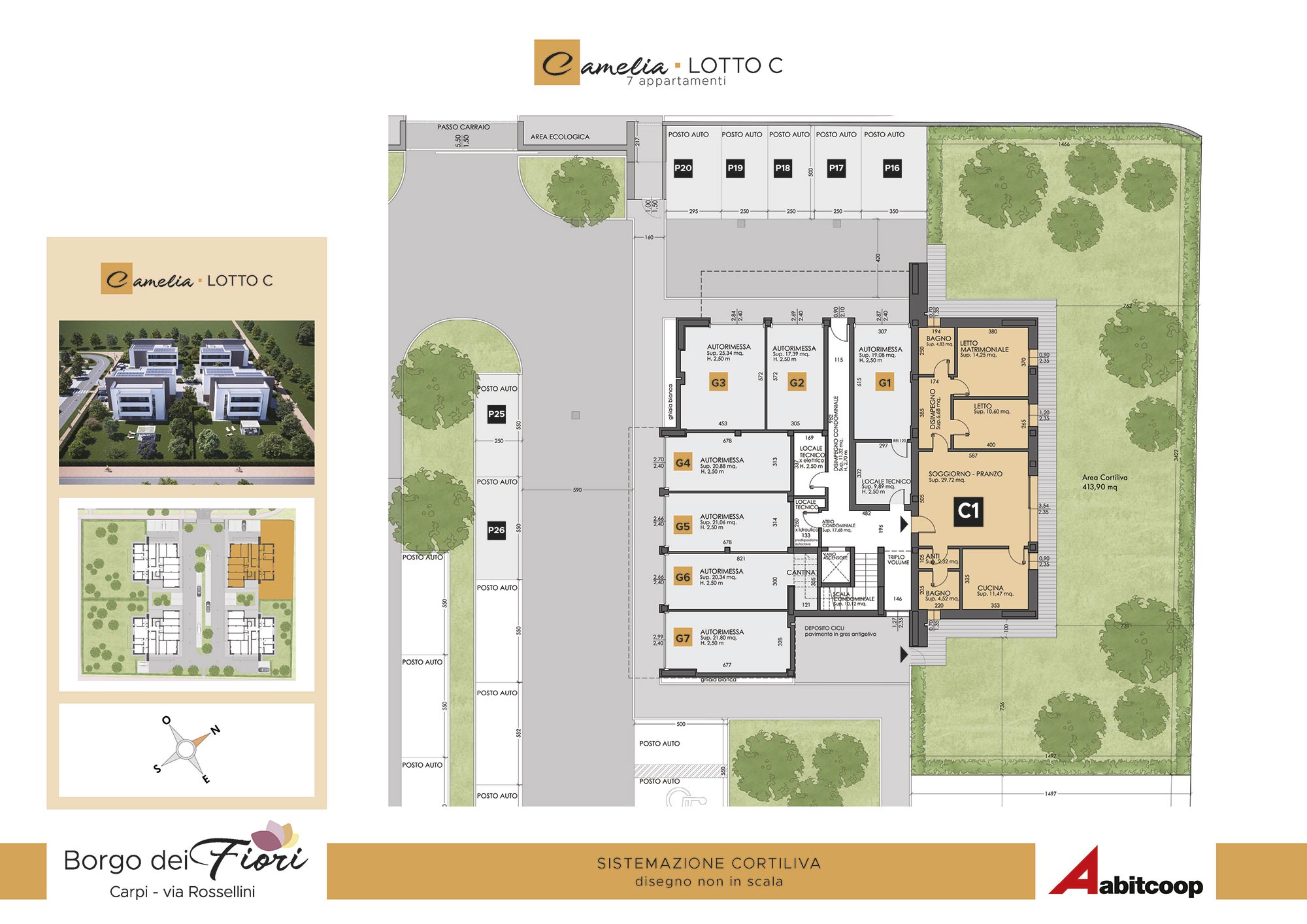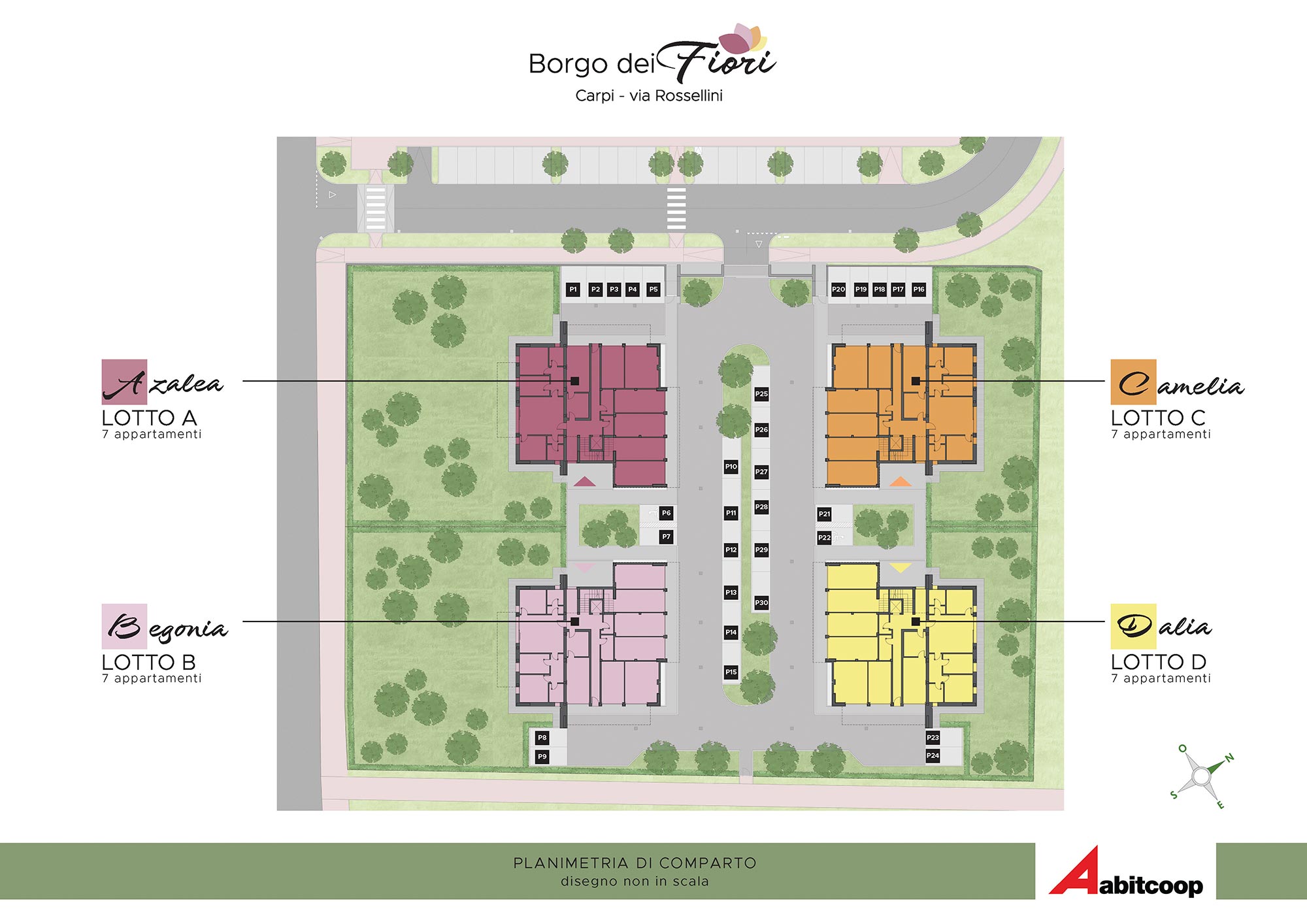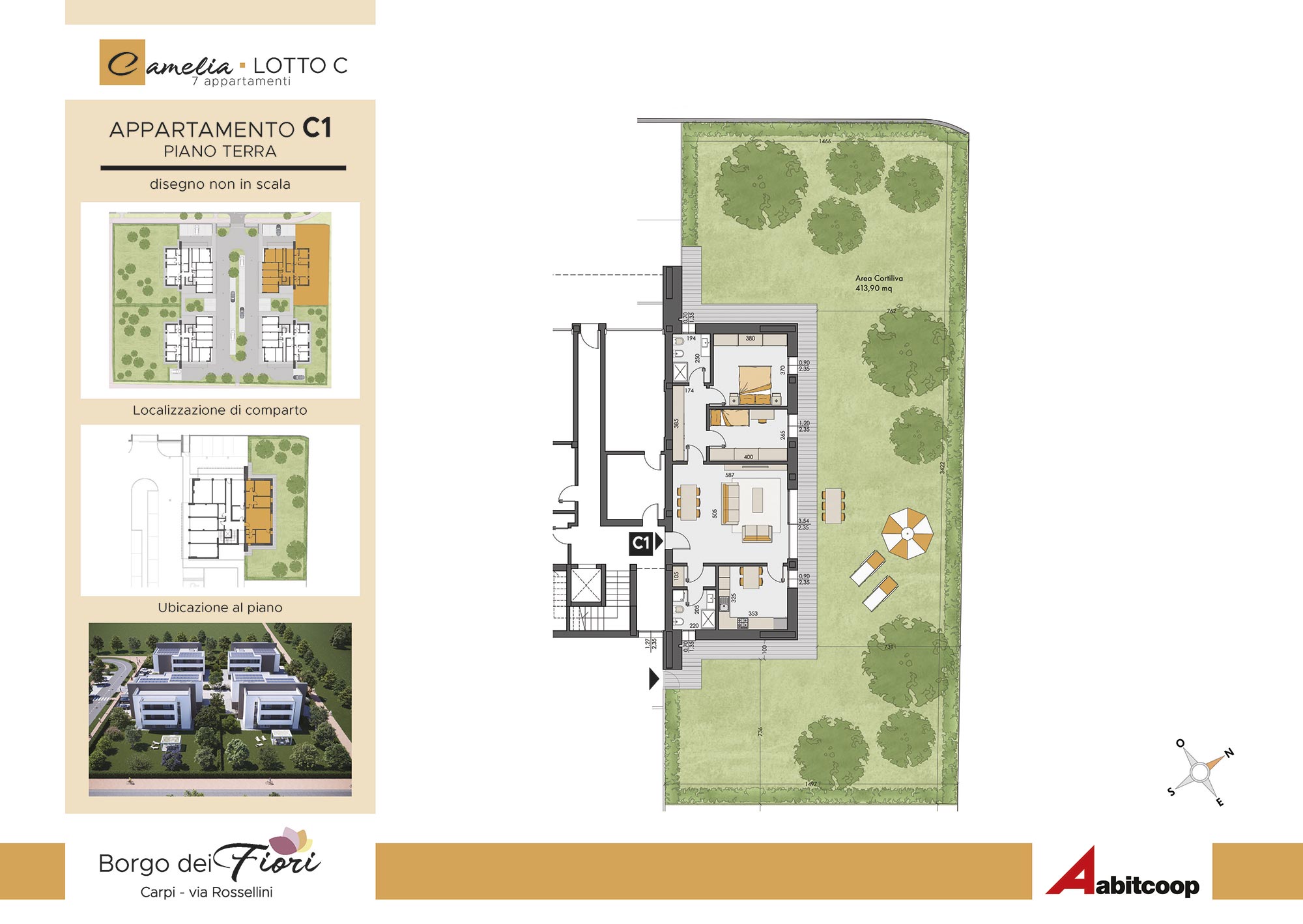 Abitcoop ha programmato la realizzazione di un nuovo intervento residenziale in edilizia libera a Carpi, zona Cibeno, dove in tutto realizzerà 28 appartamenti di medie dimensioni, suddivisi in 4 eleganti palazzine da 7 unità abitative ciascuna.A breve inizieremo la costruzione dei primi due fabbricati: Camelia e Dalia.L’intervento si svilupperà in un’area compresa tra via Tre ponti e via Rossellini (accanto alla Scuola materna Balena blu) in un quartiere immerso nel verde, da molti apprezzato per le sue caratteristiche di armonia e vivibilità, unite alla vicinanza di importanti servizi: supermercato, negozi e scuole si trovano alla distanza massima di 1 km.Le case del Borgo dei Fiori rispondono ai più moderni criteri antisismici, sono progettate per avere costi di gestione molto contenuti e un alto comfort abitativo.I necessari permessi per la realizzazione sono già disponibili e l’inizio dei lavori è previsto entro l'estate del 2025, con la consegna ipotizzabile entro dicembre 2026.
