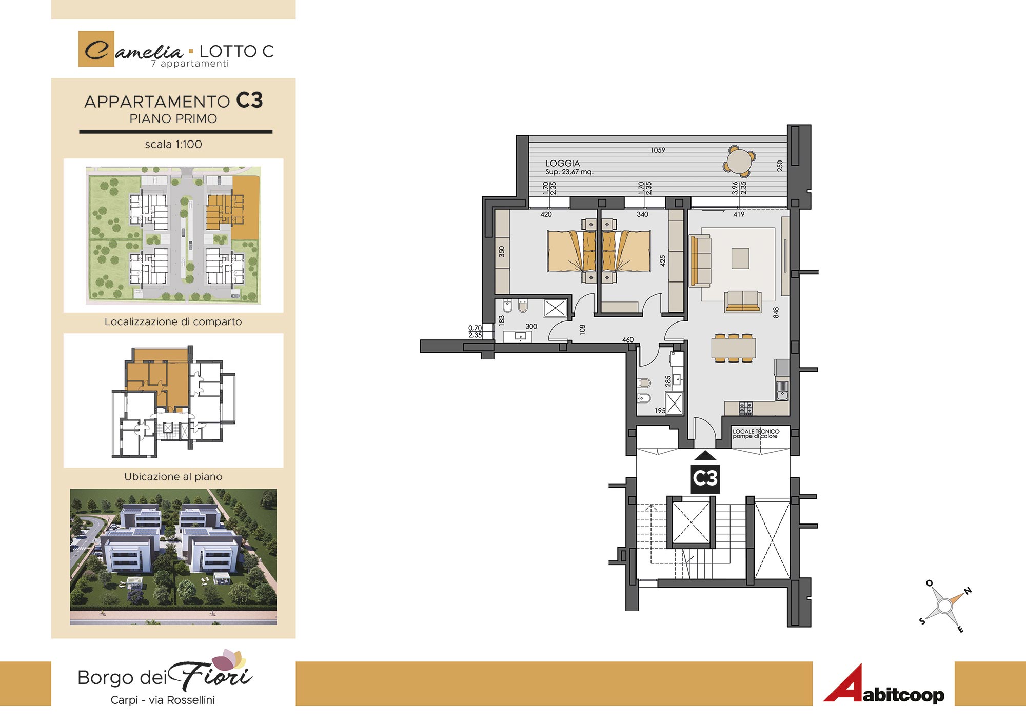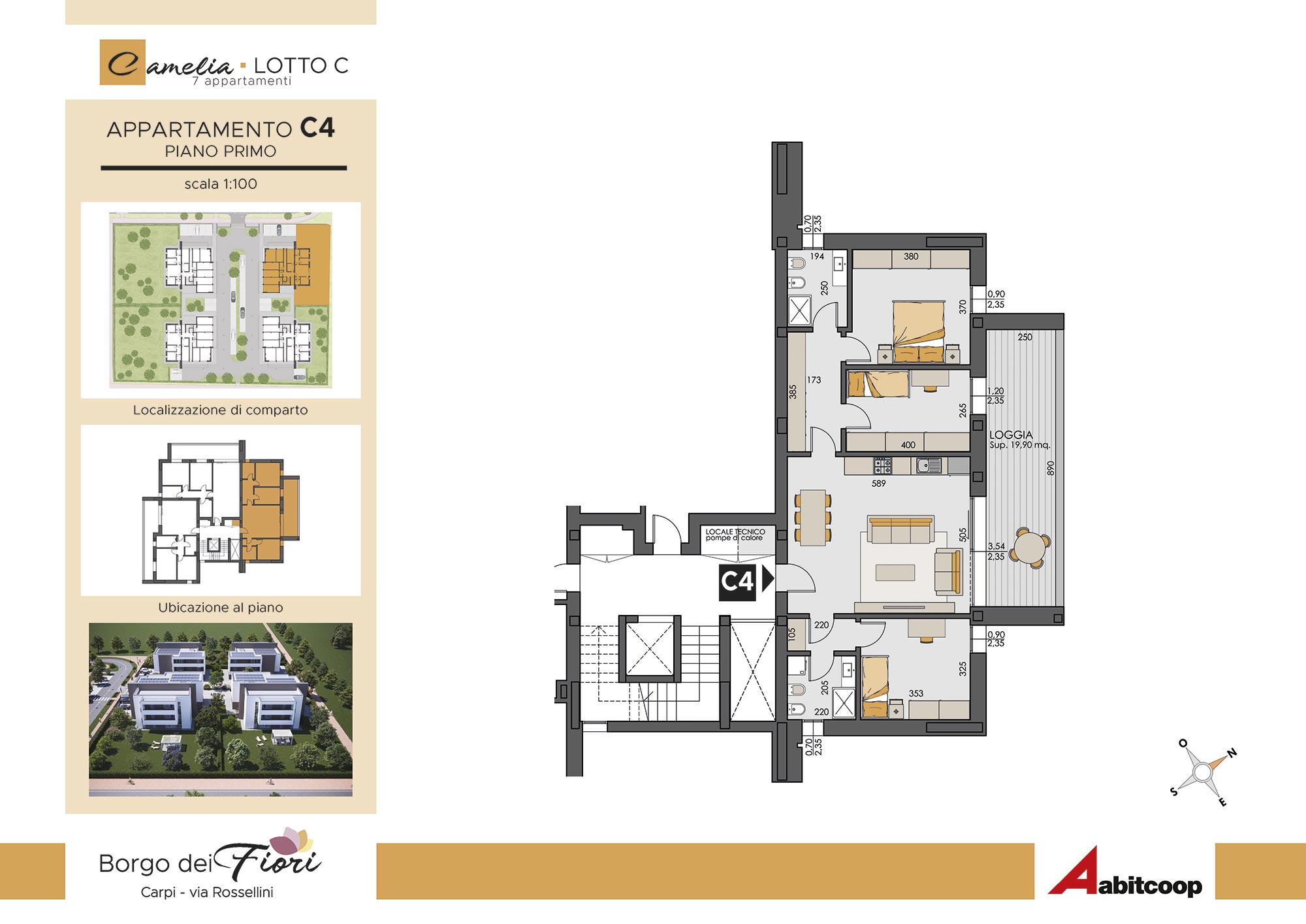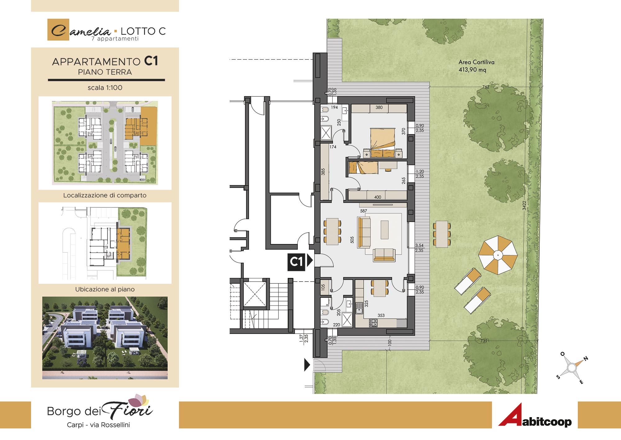 Abitcoop ha programmato la realizzazione di un nuovo intervento residenziale in edilizia libera a Carpi, zona Cibeno, dove in tutto realizzerà 28 appartamenti di medie dimensioni, suddivisi in 4 eleganti palazzine da 7 unità abitative ciascuna.A breve inizieremo la costruzione dei primi due fabbricati: Camelia e Dalia.L’intervento si svilupperà in un’area compresa tra via Tre ponti e via Rossellini (accanto alla Scuola materna Balena blu) in un quartiere immerso nel verde, da molti apprezzato per le sue caratteristiche di armonia e vivibilità, unite alla vicinanza di importanti servizi: supermercato, negozi e scuole si trovano alla distanza massima di 1 km.Le case del Borgo dei Fiori rispondono ai più moderni criteri antisismici, sono progettate per avere costi di gestione molto contenuti e un alto comfort abitativo.I necessari permessi per la realizzazione sono già disponibili e l’inizio dei lavori è previsto entro l'estate del 2025, con la consegna ipotizzabile entro dicembre 2026.