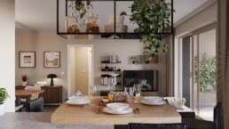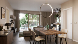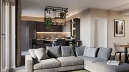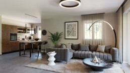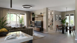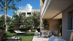 Gli appartamenti sono tutti dotati di luminose vetrate sulla zona living dalle quali si accede alle logge/balcone o ai terrazzi o ai giardini.