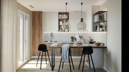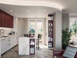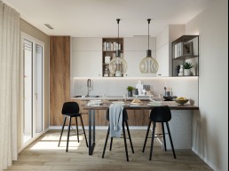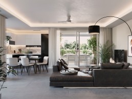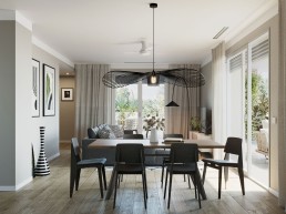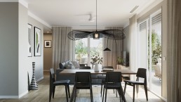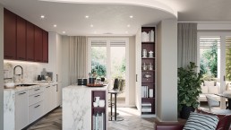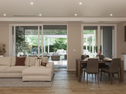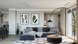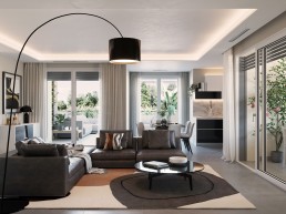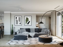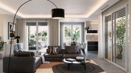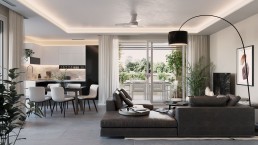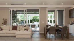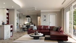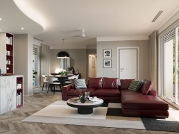 Gli appartamenti sono caratterizzati da stanze di ampie metrature e sono tutti dotati di luminose vetrate sulla zona living dalle quali si accede agli spazi esterni.