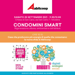 Sabato 25 settembre, nell’ambito del festival Modena Smart Life, Abitcoop promuove un’interessante iniziativa sui ‘Condomini smart’, per approfondire il tema della rigenerazione urbana, ambientale e dell’abitare.