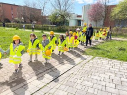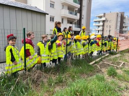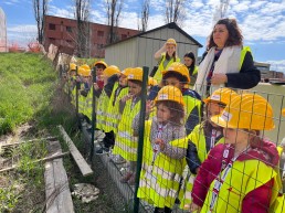 I bambini, dopo aver indossato caschetti e giubbotti, hanno raggiunto Parco dei Fiori a piedi, hanno visitato dall’esterno l’area in costruzione e hanno potuto vedere in azione la betoniera e la gru, imparando a cosa serve il calcestruzzo e come vengono usati i mattoni.
