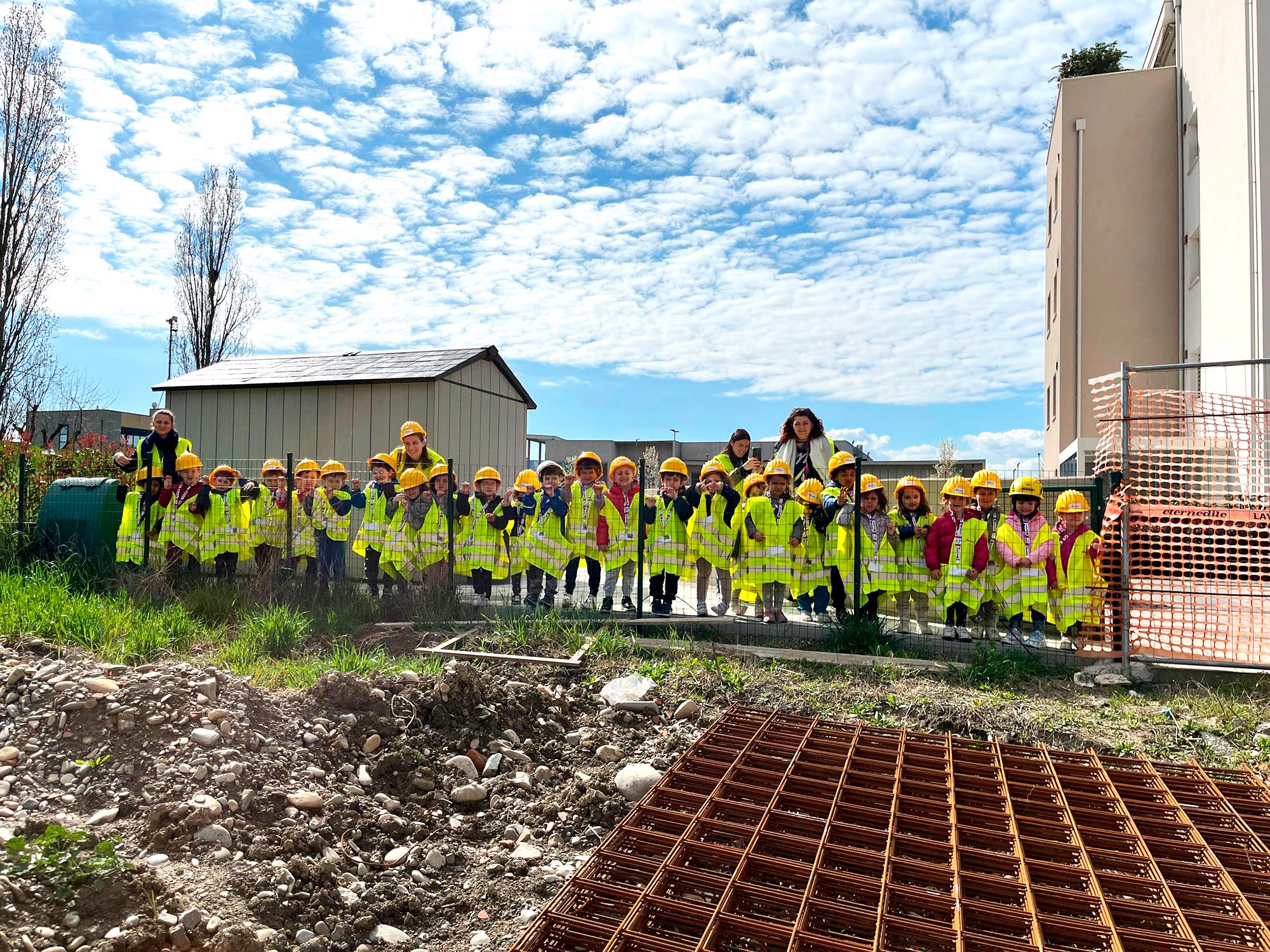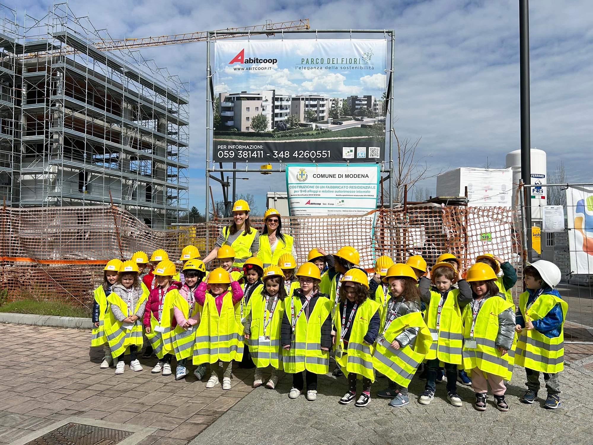 Lo scorso 17 marzo, 26 bambini della classe dei 4 anni della Scuola dell’infanzia Famiglia, hanno visitato il cantiere di Parco dei Fiori, dove Abitcoop sta costruendo, accanto ai 2 già realizzati, 3 nuovi fabbricati per un totale di 24 appartamenti.
